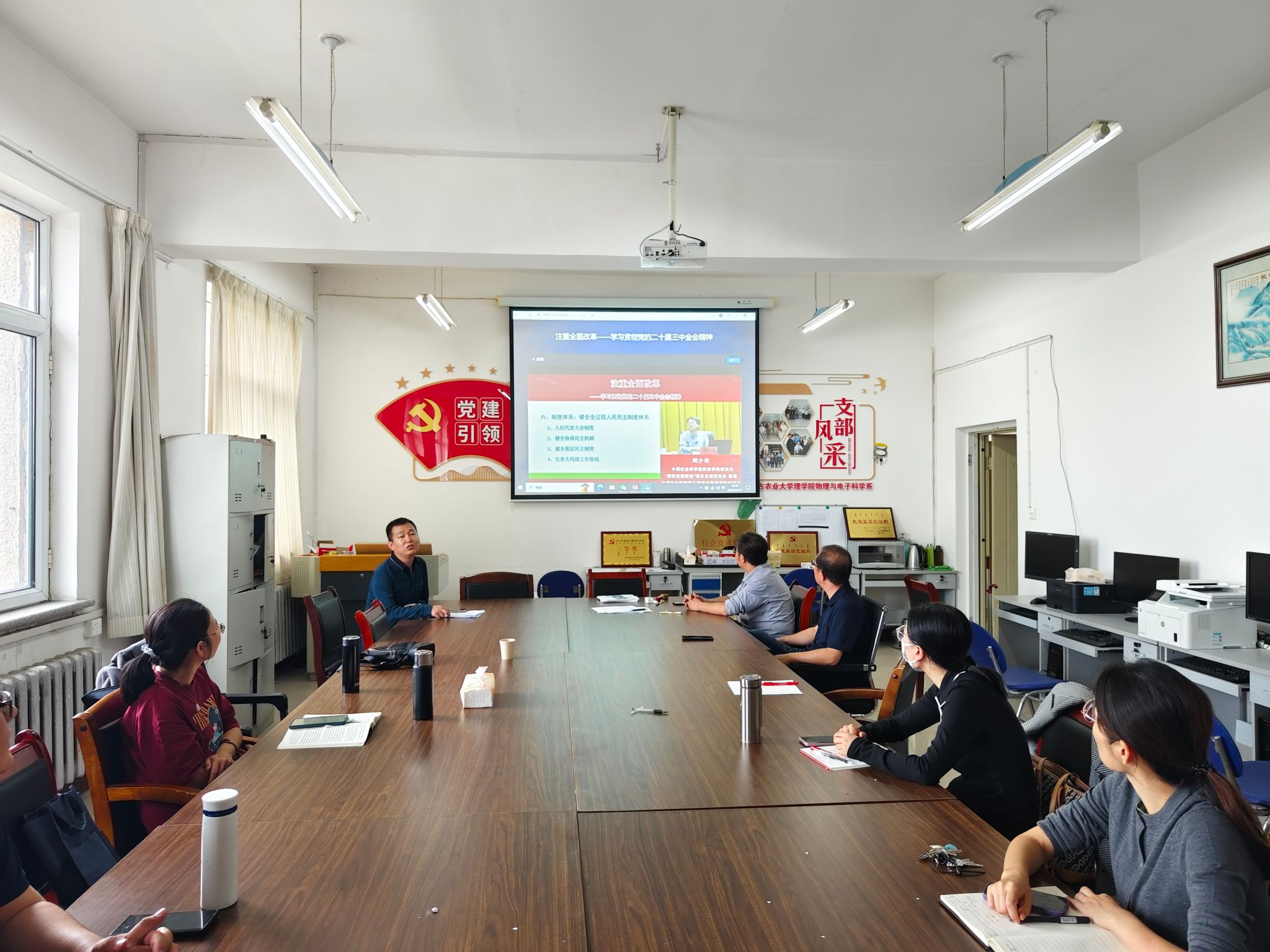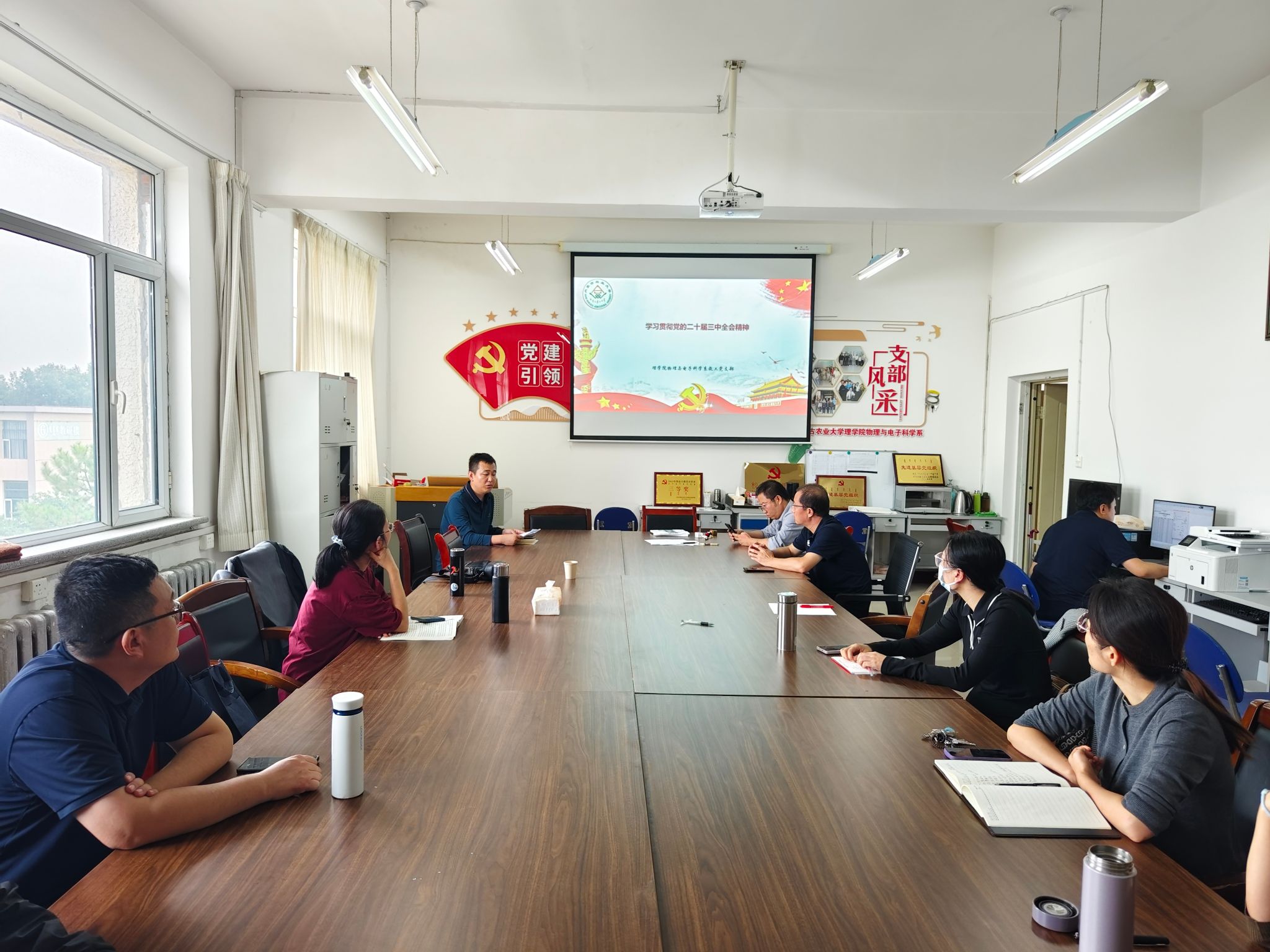 为深入学习贯彻党的二十届三中全会精神,深刻领悟习近平新时代中国特色社会主义思想,增强党员教师的思想自觉和行动自觉,9月19日下午4时,物理与电子科学系教工党支部组织全体党员开展党的二十届三中全会精神集中学习活动,会议由党支部书记张强主持。