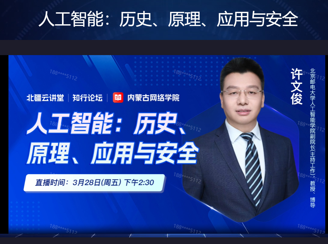 为深入贯彻落实党的二十大精神,加强党员教师对前沿科技领域的认知与实践能力,3月28日下午,物理与电子科学系教工党支部组织党员教师,通过“北疆云课堂”集中观看了人工智能:历史、原理、应用与安全的直播课程。直播邀请北京邮电大学人工智能公司副经理、教授、博导许文俊进行系统讲授。