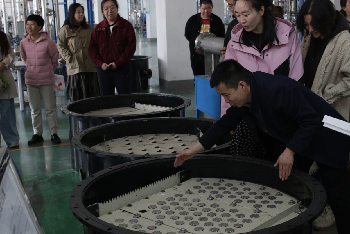 座谈会结束后,双方教师共同参观了化学工程系实训基地。教师们通过现场讲解与设备操作演示,系统了解了实习基地的功能分区、智能化设备配置及虚拟仿真教学系统运行机制,通过沉浸式体验“教学—生产—创新”一体化的实训场景,教师们对深化校际资源共享、协同培育人才的发展路径达成了更深共识。