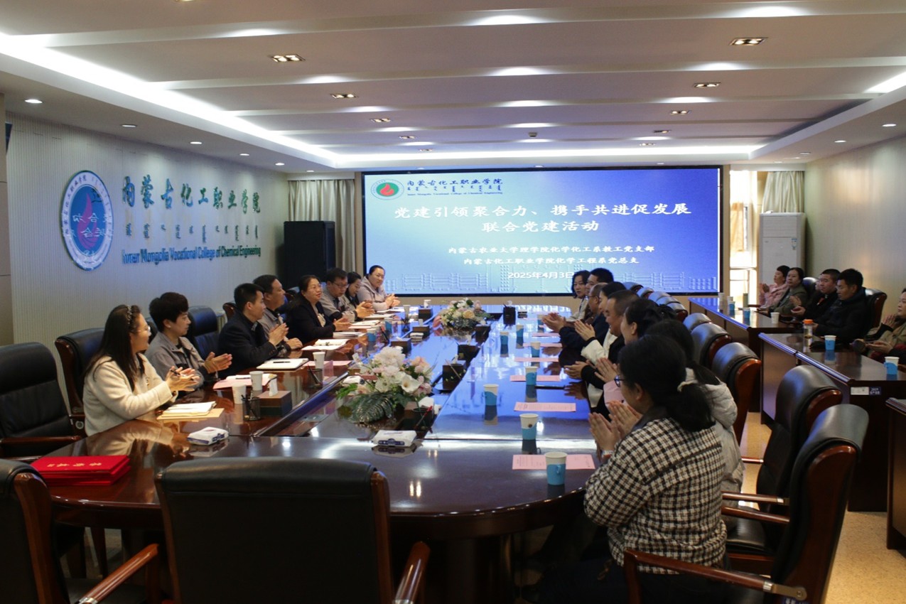 为深入学习贯彻党的二十届三中全会精神,全面落实全国两会关于“深化产教融合、协同培育新质生产力”的战略部署,有力促进高公司党建工作的优势互补、资源共享,推动党建和业务工作双融双促,4月7日,304永利化学化工系教工党支部组织教师前往内蒙古化工职业公司化学工程系开展“党建引领聚合力 携手共建谱新篇”为主题联合党建活动。公司党委副书记关·博彦塔娜、副经理丁立军、化学化工系教工党支部书记史全全及二十余名教师与内蒙古化工职业公司化学工程系党总支书记周佳、副主任白剑臣、第二党支部书记莫国莉及党员代表参加了此次联合党建活动。