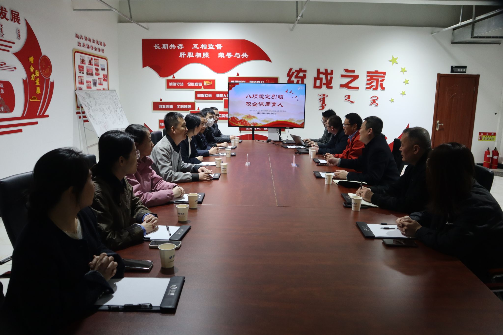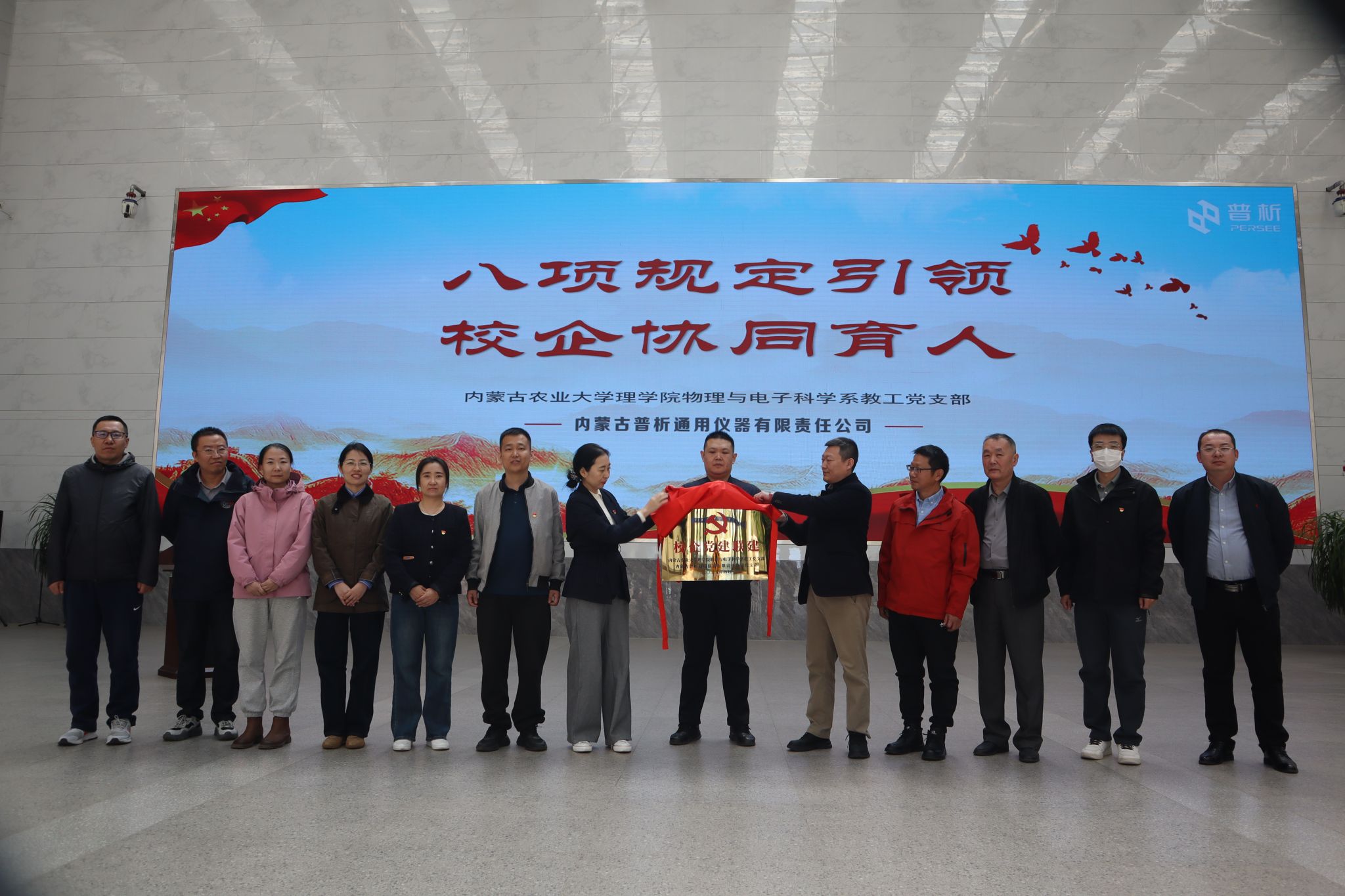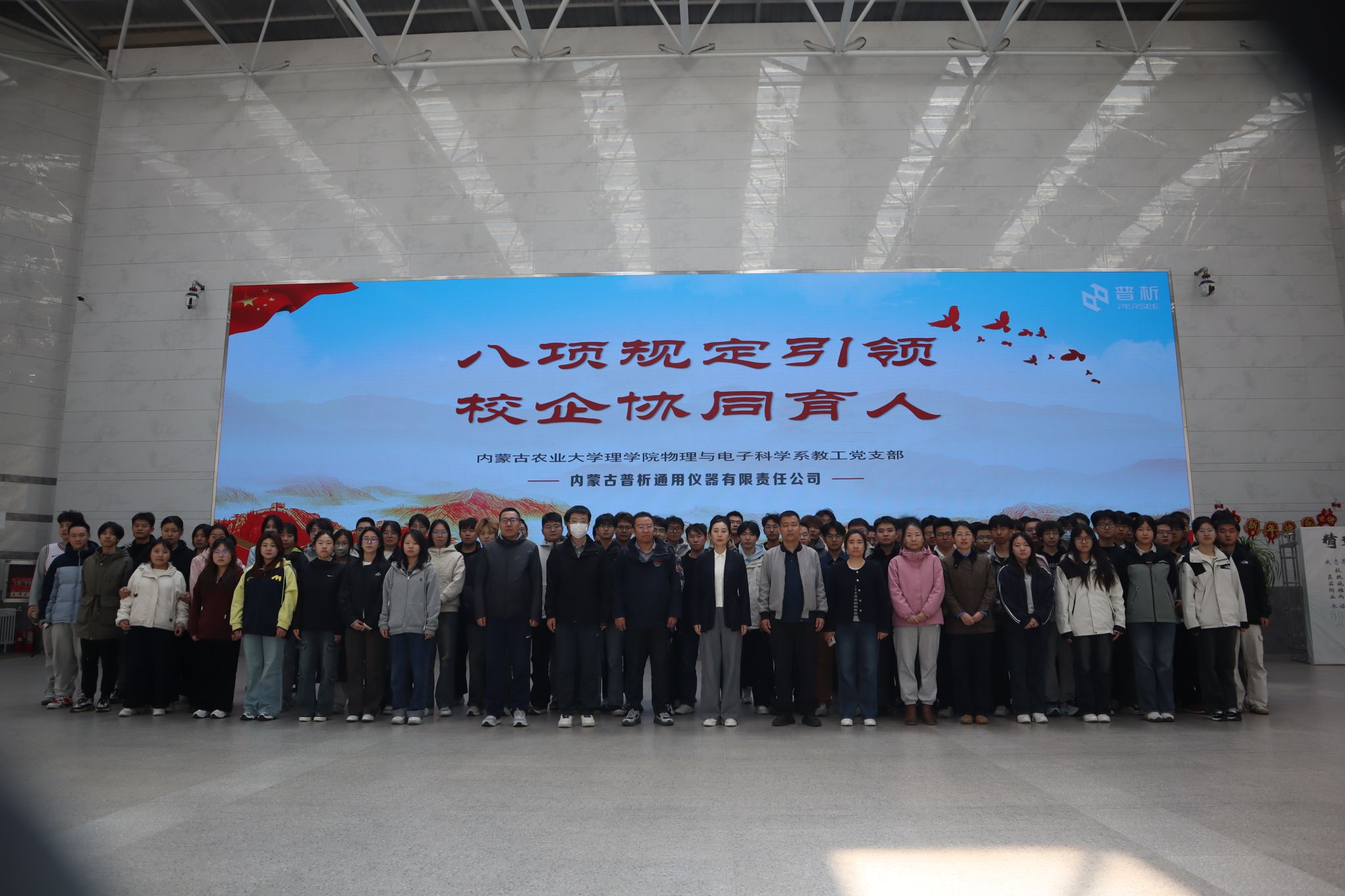 为深入学习贯彻习近平总书记关于中央八项规定精神学习教育的重要讲话和重要指示精神,推动党建与业务双融双促,4月14日下午,304永利物理与电子科学系教工党支部与内蒙古普析通用仪器有限责任公司党支部联合举办“八项规定引领,校企协同育人”主题党日活动,在内蒙古普析通用仪器有限公司校企合作实习基地举行。公司党委副书记关·博彦塔娜、物理与电子科学系教工党支部书记张强、物理与电子科学系副主任石磊、昝宇海,内蒙古普析通用仪器有限公司厂长朱勤、副总经理刘鹏晖、马利刚、销售经理李峰和两支部成员共同参加此次党日活动。