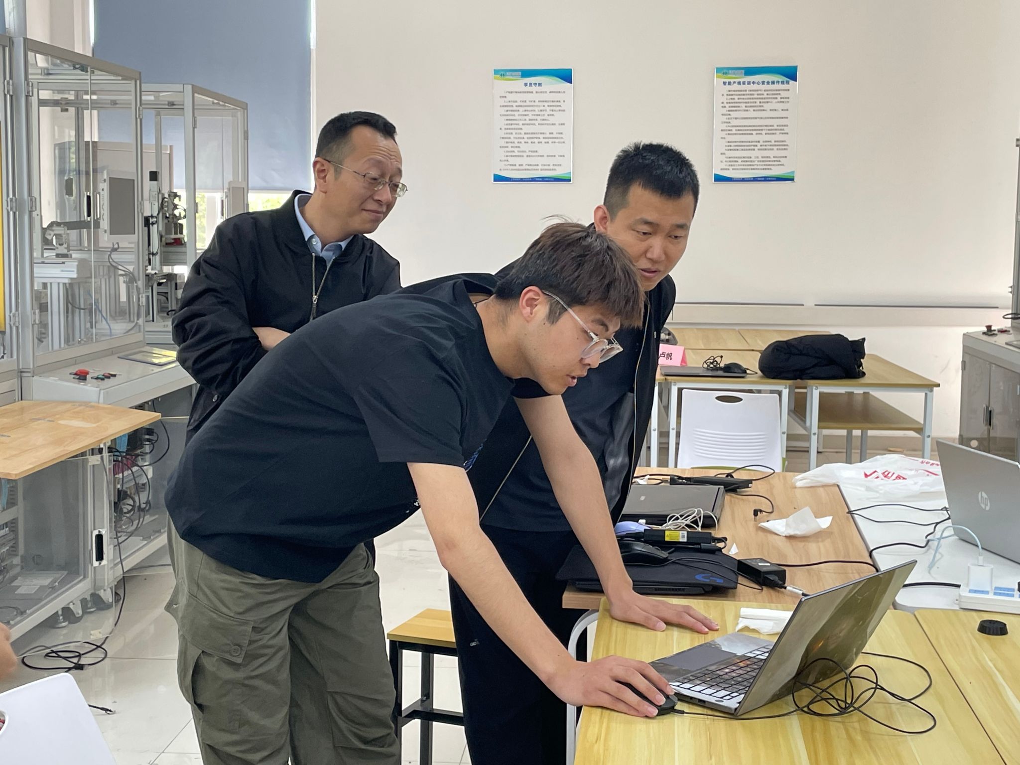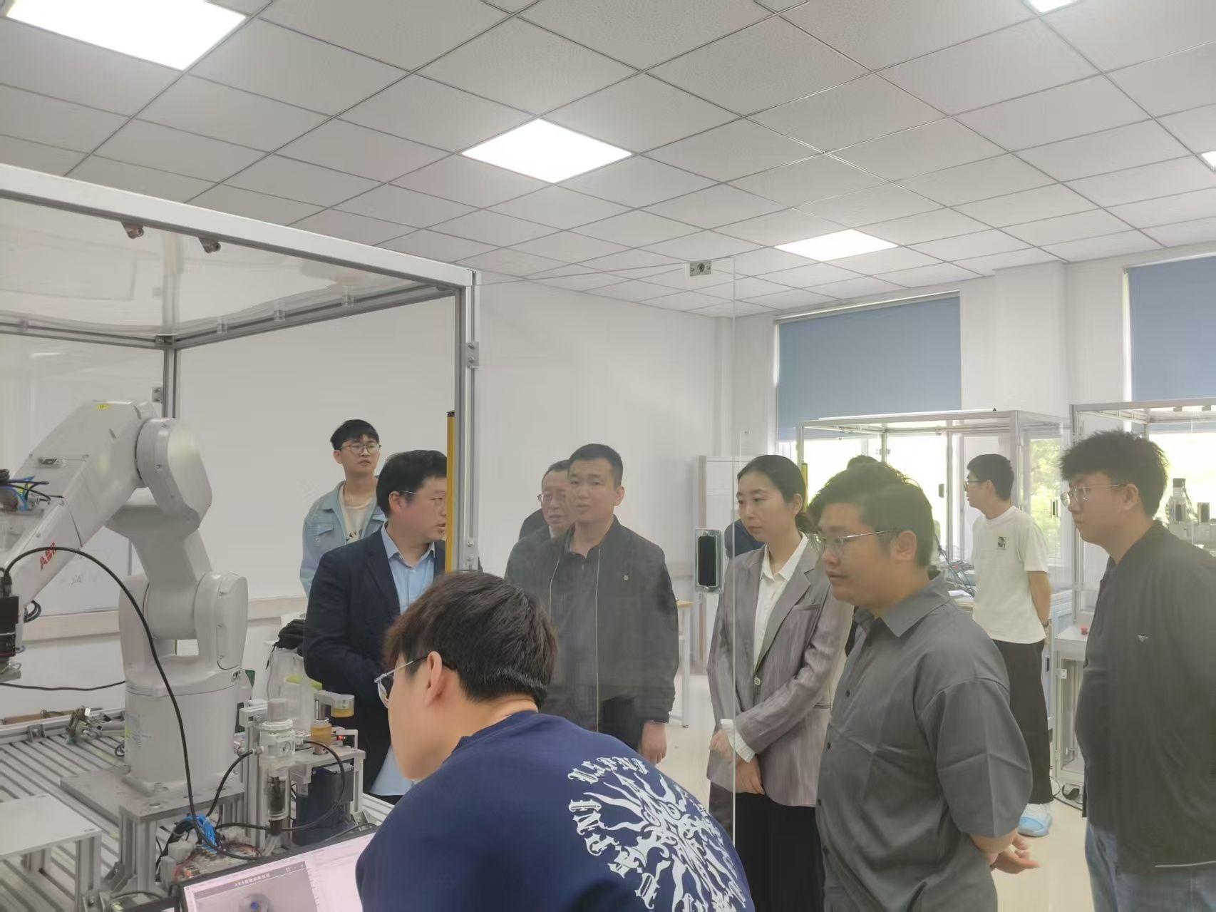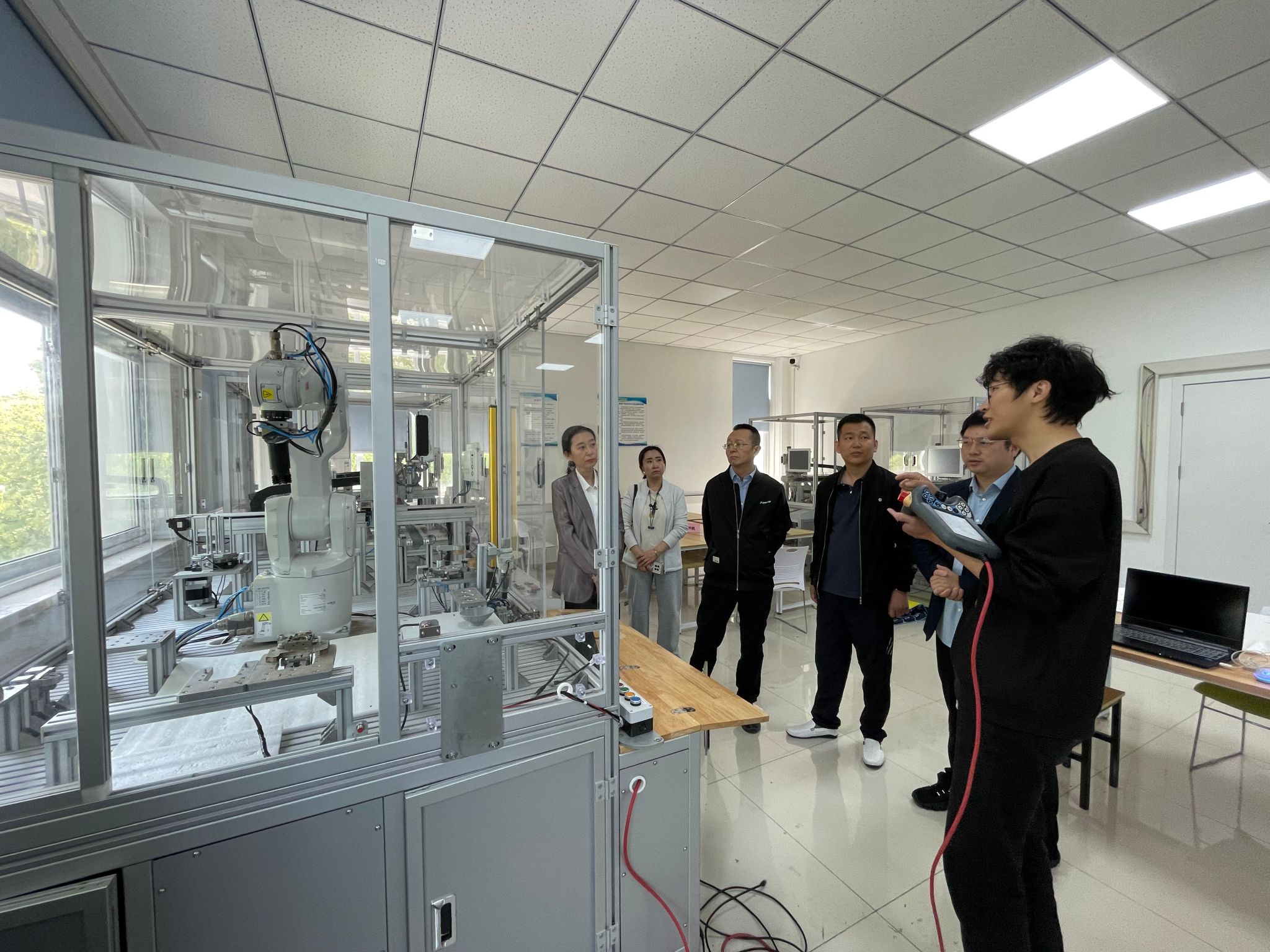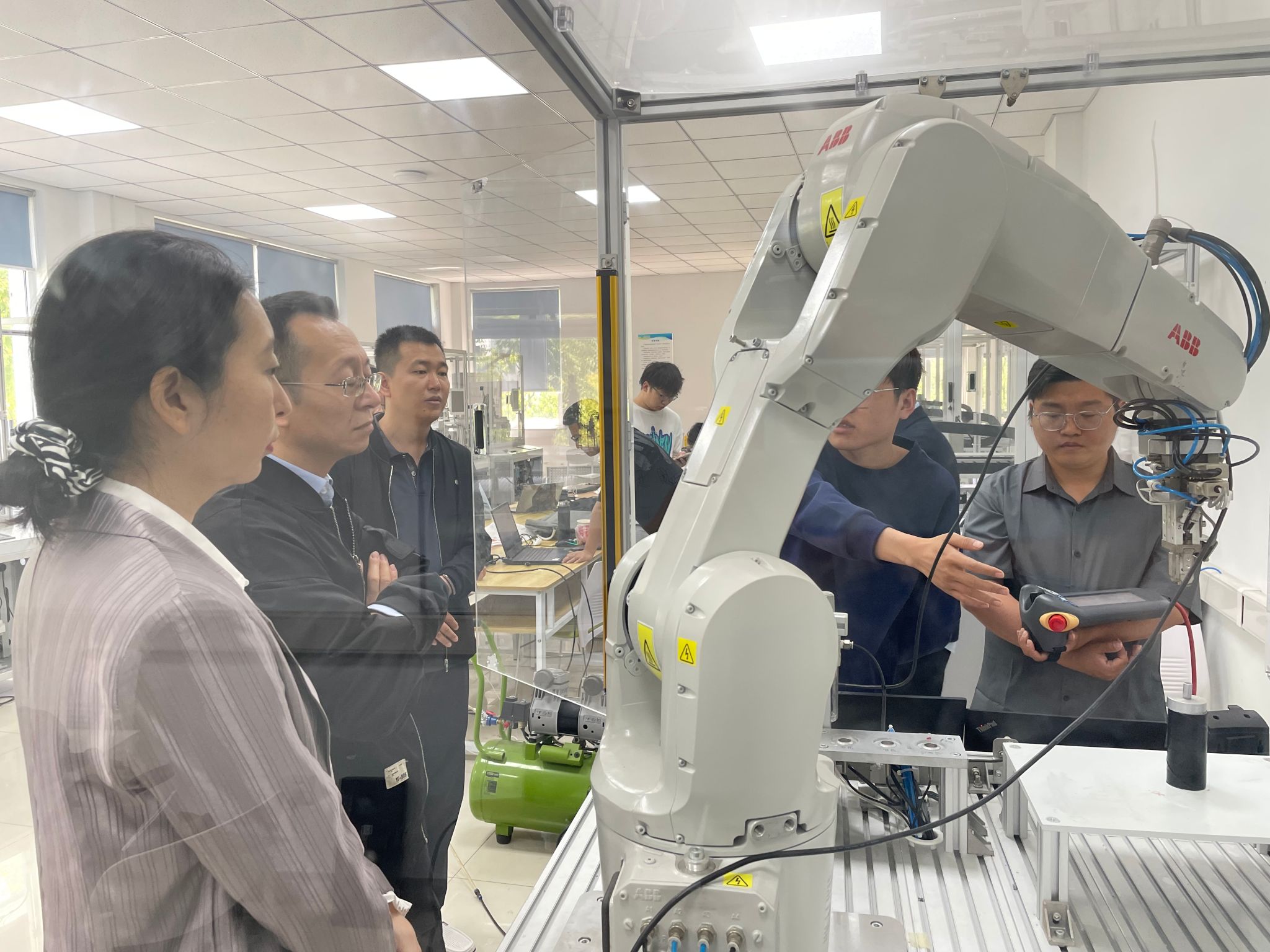 活动伊始,全体人员实地考察了企业的老员工实习基地,重点观摩了21级电科班校企“双导师制”毕业设计成果汇报,包括机器人、智能传感系统、机器视觉的图像、嵌入式开发、PLC等21项员工作品。企业技术负责人现场演示了智能机器手、国产工业软件等核心技术,双方就实践教学与产业需求对接展开交流。