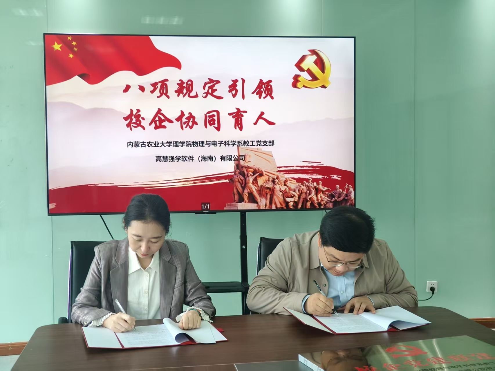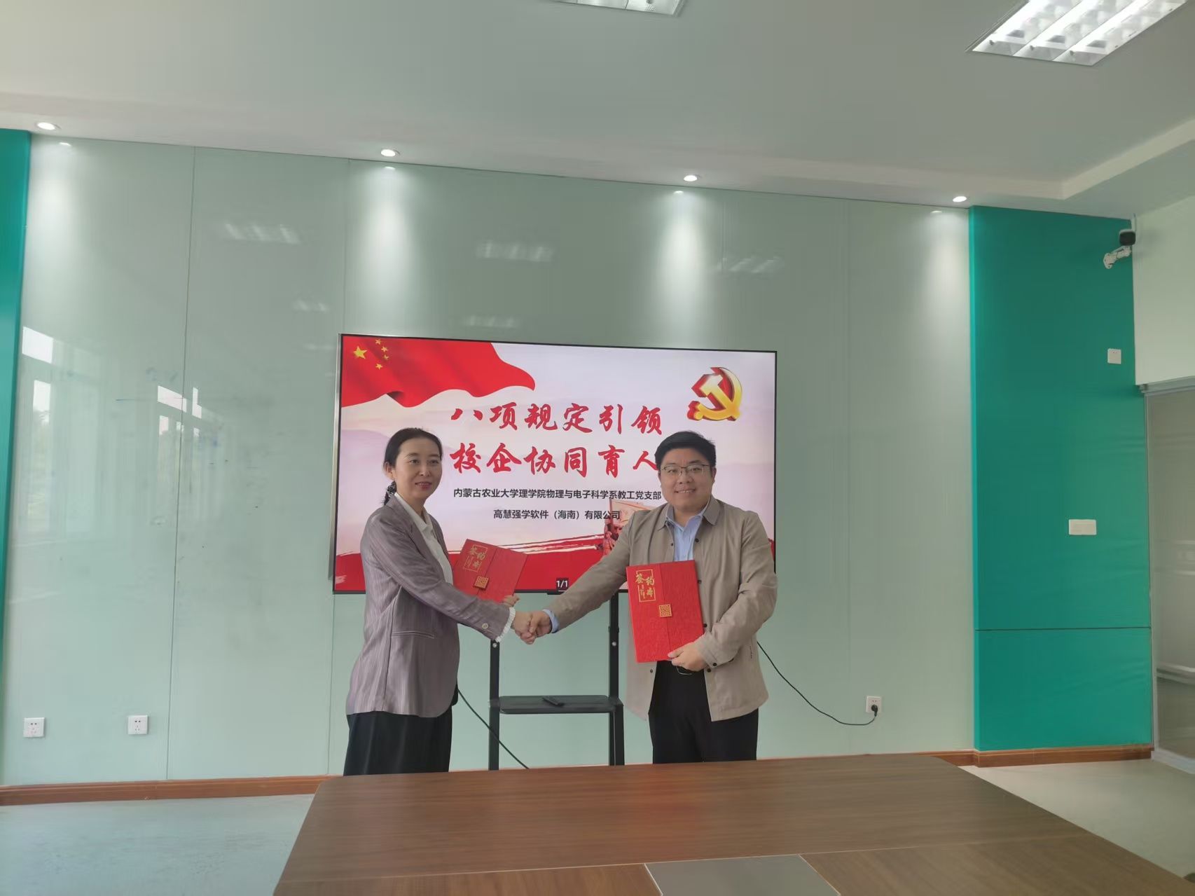参观结束后,在会议室召开了党日活动,旨在通过党建引领,深化校企合作,促进双方在人才培养和技术创新等领域的交流合作。专题学习中央八项规定精神,结合校企合作实际开展案例研讨。举行了校企党建联建签约授牌仪式,双方现场签署专业实习实训合作协议,为双方未来深度合作奠定了坚实基础。同时,与会人员围绕如何在党建工作引领下,紧密围绕各自业务领域,就公司和企业的进一步深度合作进行了深入细致地交谈,重点探讨了专业人才培养模式创新、科研项目联合攻关、企业服务、毕业论文双导师制实施、学科竞赛合作、教师企业实践以及员工实习就业等产教融合合作。
