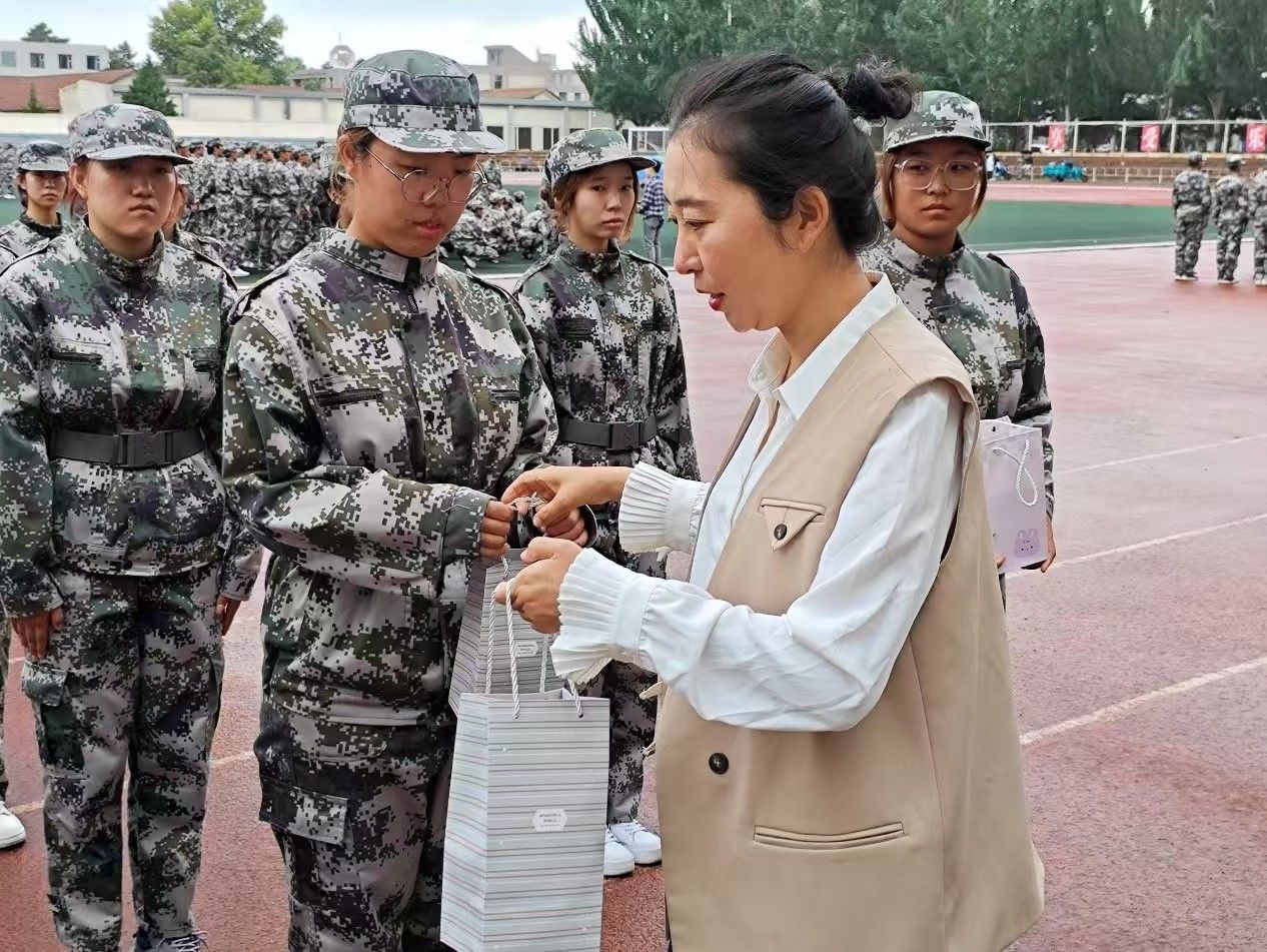 首先,关书记表示,虽然天气炎热、烈日当空,但看到一身戎装的学子们朝气蓬勃、斗志昂扬,令老师们深感欣慰。军训不仅是必修的课业,更是一场深刻的爱国主义教育和国防教育。她鼓励同学们把军训当作一次难得的集体活动,相互交流学习,增进集体凝聚力。希望大家在军训过程中锤炼意志强健体魄,把在军训过程中收获的成长,转化为未来学习生活的宝贵财富。随后,老师们为同学们送上精心准备的礼品,鼓励着同学们在军训中砥砺前行。