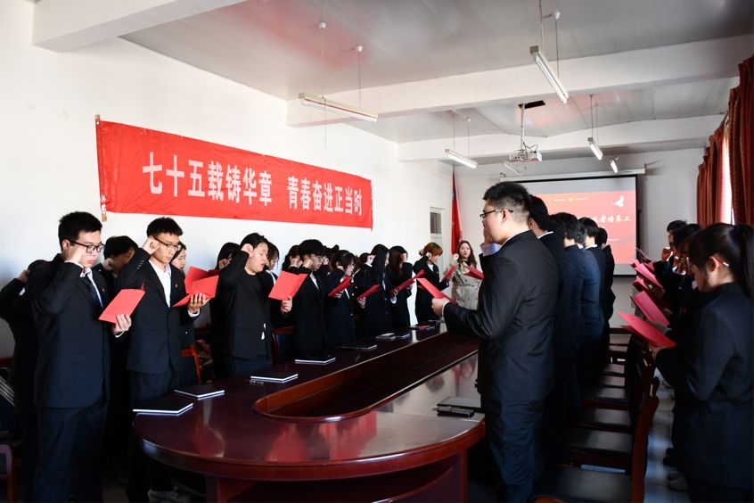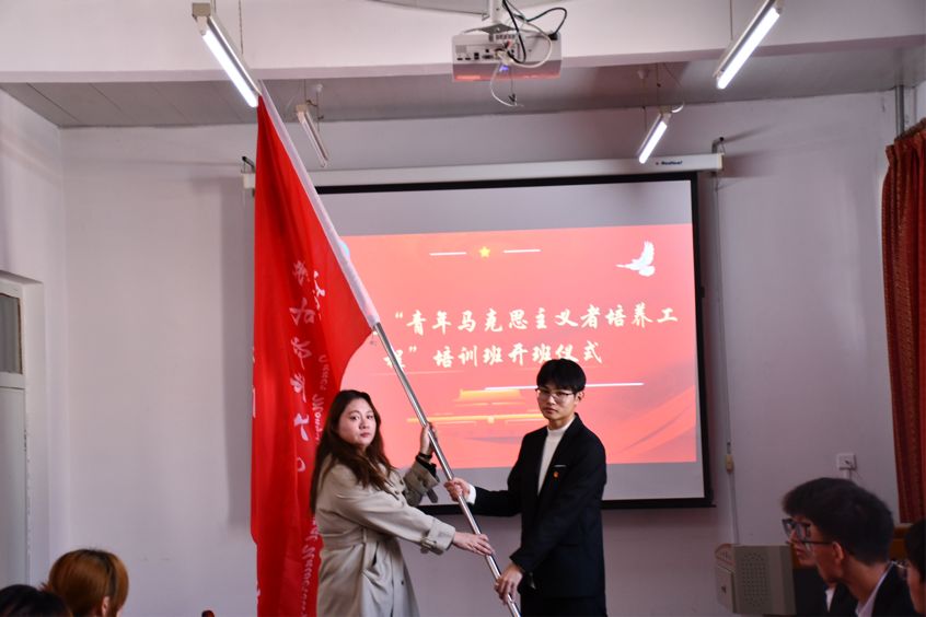 开班伊始,主持人讲述了本次培训的目的和内容。随后在主持人的带领下,全体员工骨干宣读了入团誓词,通过宣读,让全体员工骨干深刻意识到自己的身份,铭记责任,时刻提醒自己要以共青团员的标准要求自己。随后,全体员工骨干齐唱团歌,营造团结奋进的氛围,在共同的旋律和歌声中提升组织的凝聚力和向心力。接着,宋老师致辞,她强调,青年员工应将马克思主义理论应用于社会实践、志愿服务等诸多活动中,提高青年的综合能力,青年马克思主义者应政治素质过硬,理论功底扎实,实践能力突出。然后,往期青马班优秀员工代表杨瑞泽发言,他讲述了自己在青马工程培训班中难忘的学习经历,宝贵的学习感悟。强调,作为新时代的青年,应以马克思主义为指导,积极投身于社会实践,为实现中华民族伟大复兴的中国梦贡献自己的青春力量。最后,学员代表从宋老师手中接过青马工程旗帜,正式开启青马之路。至此,本次开班仪式圆满结束。