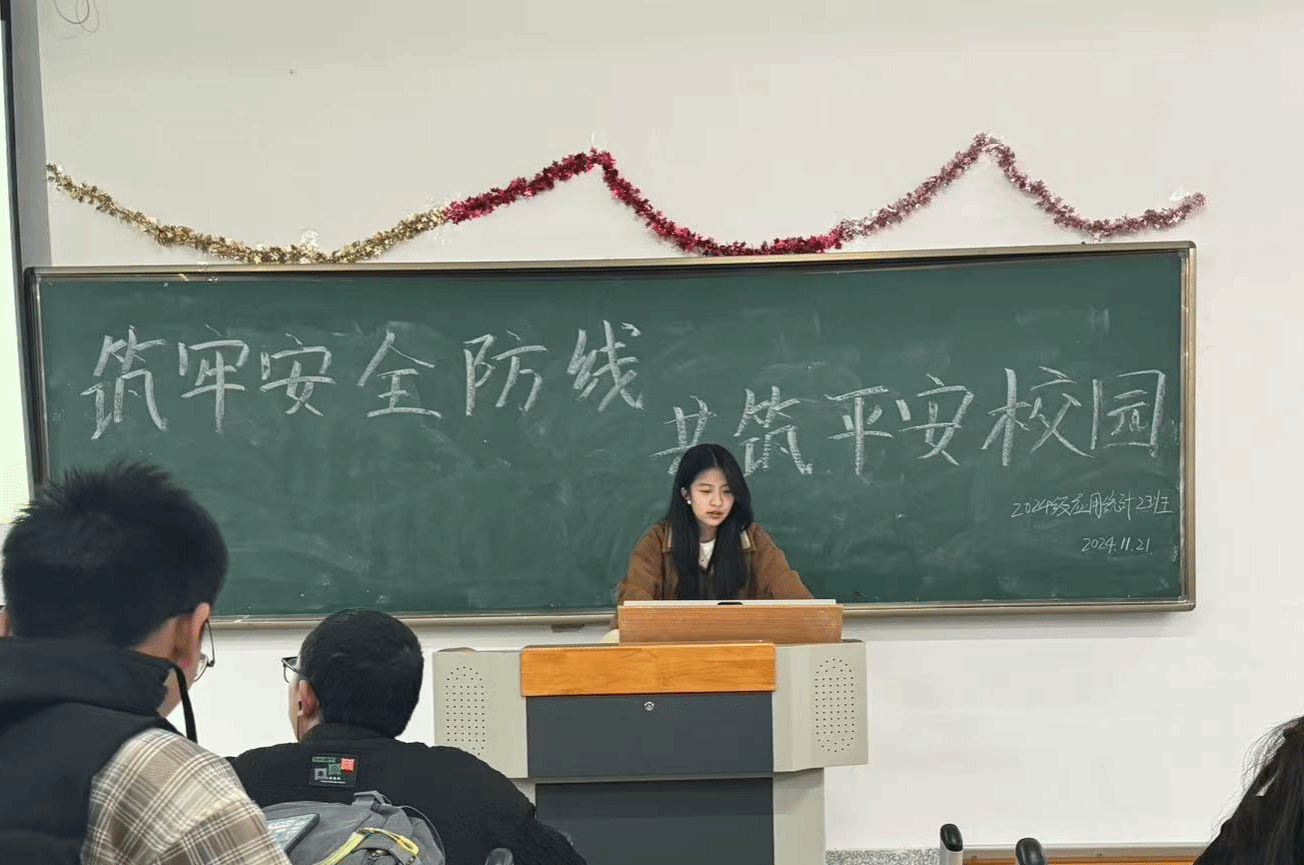 为学习安全知识,增强安全防范意识,11月21日下午,2024级应用统计学二班于304永利102教室举行了以“筑牢安全防线 共筑平安校园”为主题的团日活动。2024级应用统计学二班全体同学参加了本次团日活动。