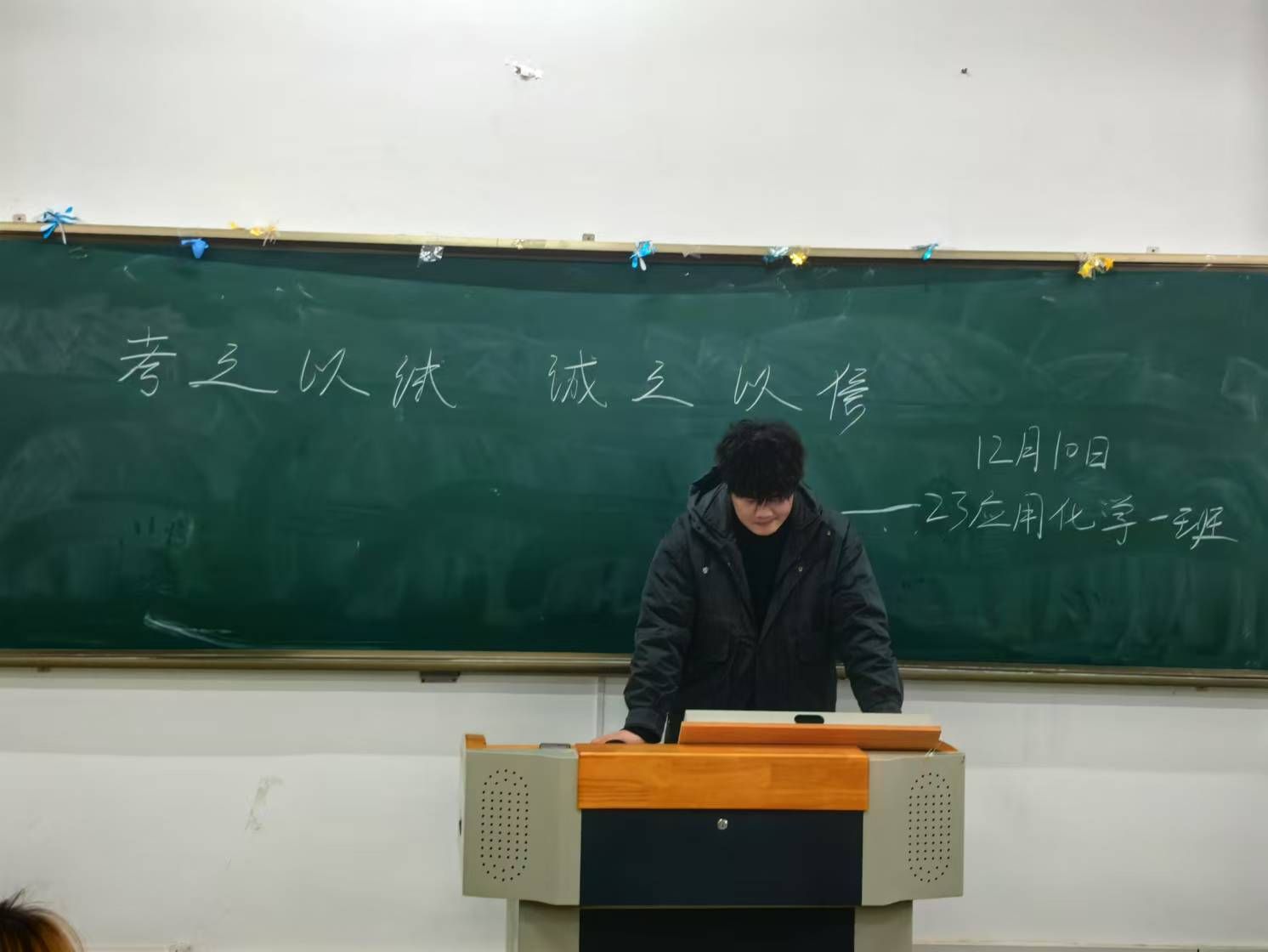 为强化诚信意识,营造优良学风 ,12月18日,2023级应用化学1班于304永利101教室开展了以“考之以试 诚之以信”为主题的团日活动, 2023级应用化学1班全体员工参加了此次活动。