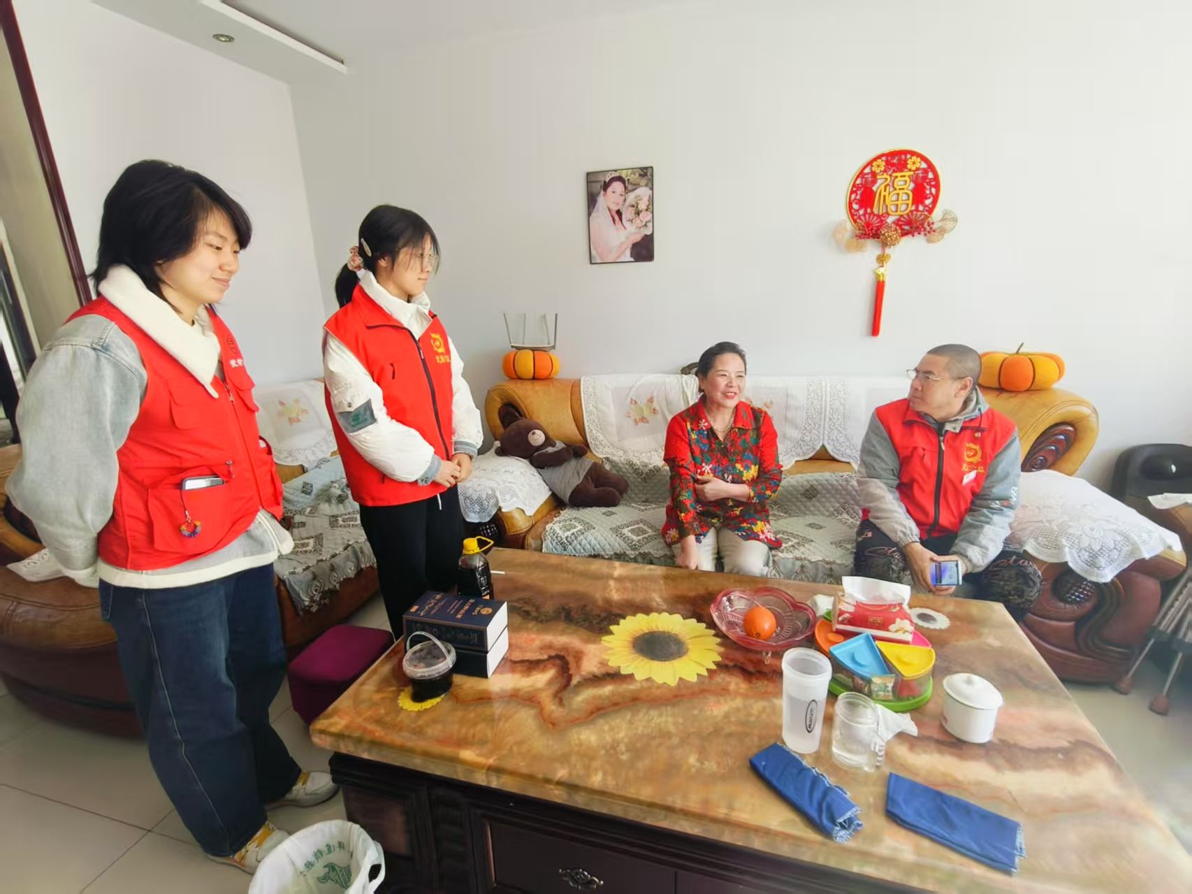 首先,青年志愿者们在工作人员的带领下,将关爱送到老人身边,陪伴老人聊天,了解老人的生活情况,关注老人的心理健康。在交谈过程中,了解到老人心理和健康问题需要社会更多关注。最后,志愿者们将带来的爱心物品递到了老人的手中,并送上了最真诚的祝愿。至此,此次活动圆满完成。