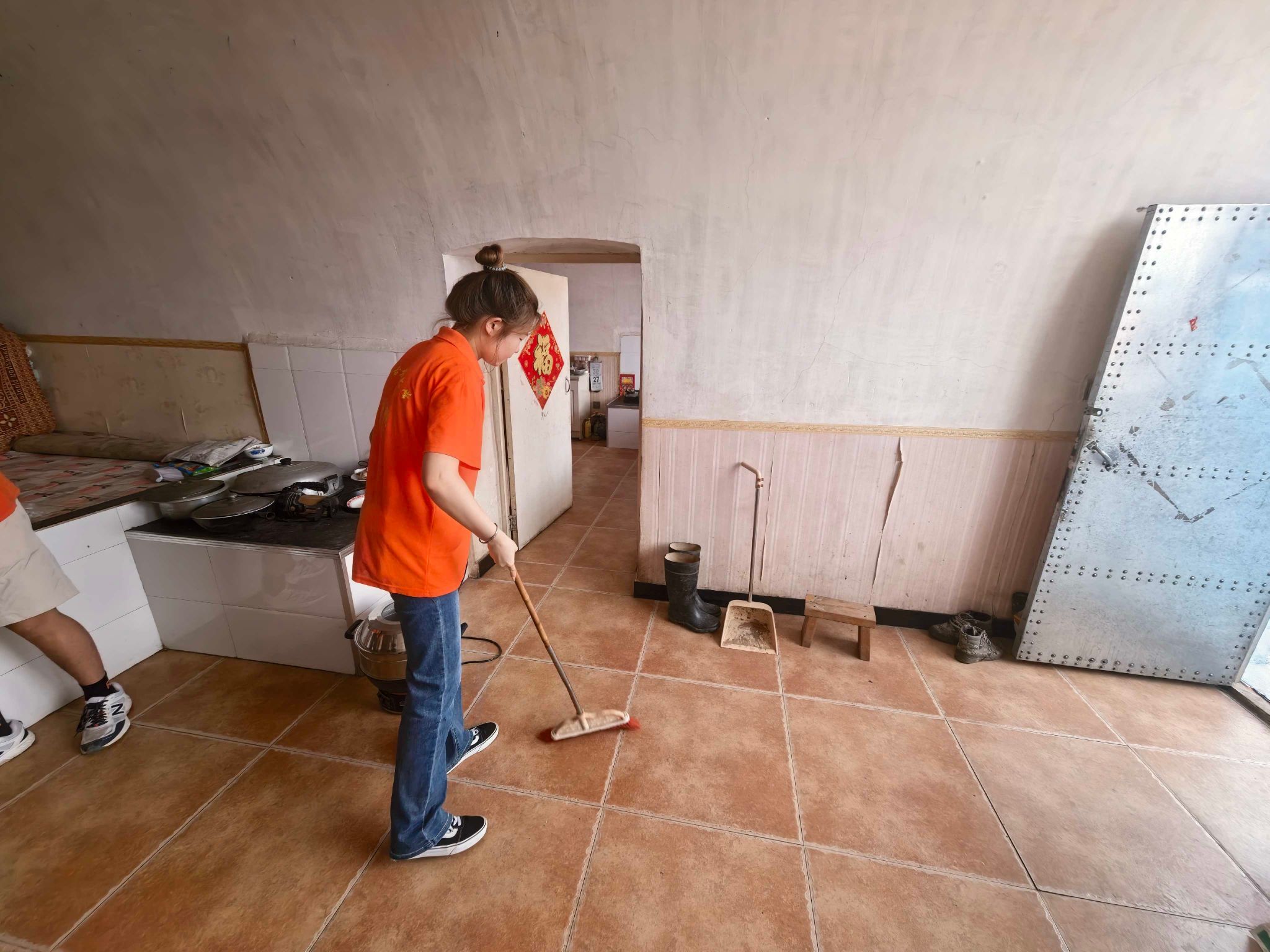 清晨,实践队队长带领大家做早操。早操过后,实践队成员们满怀热忱,整装出发,探访当地的老人居民们。他们为老人们精心准备了简易的生活物资,实践队员们围坐在老人身旁,耐心倾听他们讲述过去的故事,分享生活中的点滴,欢声笑语回荡在整个村子。同时,大家还帮助老人们打扫卫生。此外,电子科学与技术专业的队员们为老人修理电器,他们用自己的专业知识为老人们解决了实际问题。老人们脸上洋溢出幸福的笑容。现场气氛温馨融洽,其乐融融,仿佛一幅温暖的画卷。