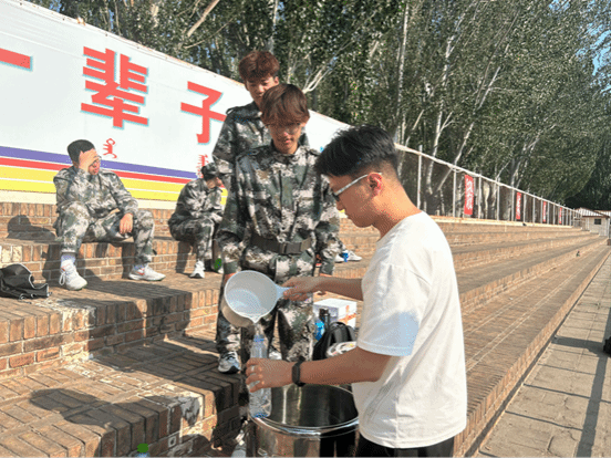 在一片迷彩绿中,跳动着一抹抹红色。阳光下,党徽更加闪耀,这是党员志愿者奔跑在军训场地,为新生送去温暖和关怀。新生军训期间,员工党员按照值班安排,及时到岗,做好工作交接。党员同志们早早集合,为军训新生送水做好准备,并准备了降暑药品。他们将新生的水杯一一打满水,亲手将水杯送杯送到同学手中。党员们密切关注新生的训练动态,协助指导员及时处理军训场上的突发情况,展现出高度的责任感和担当精神。