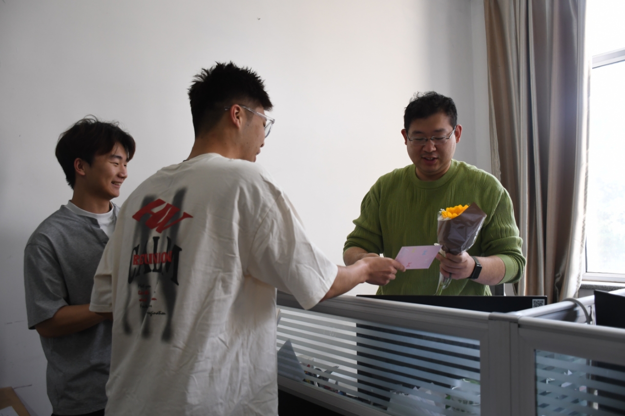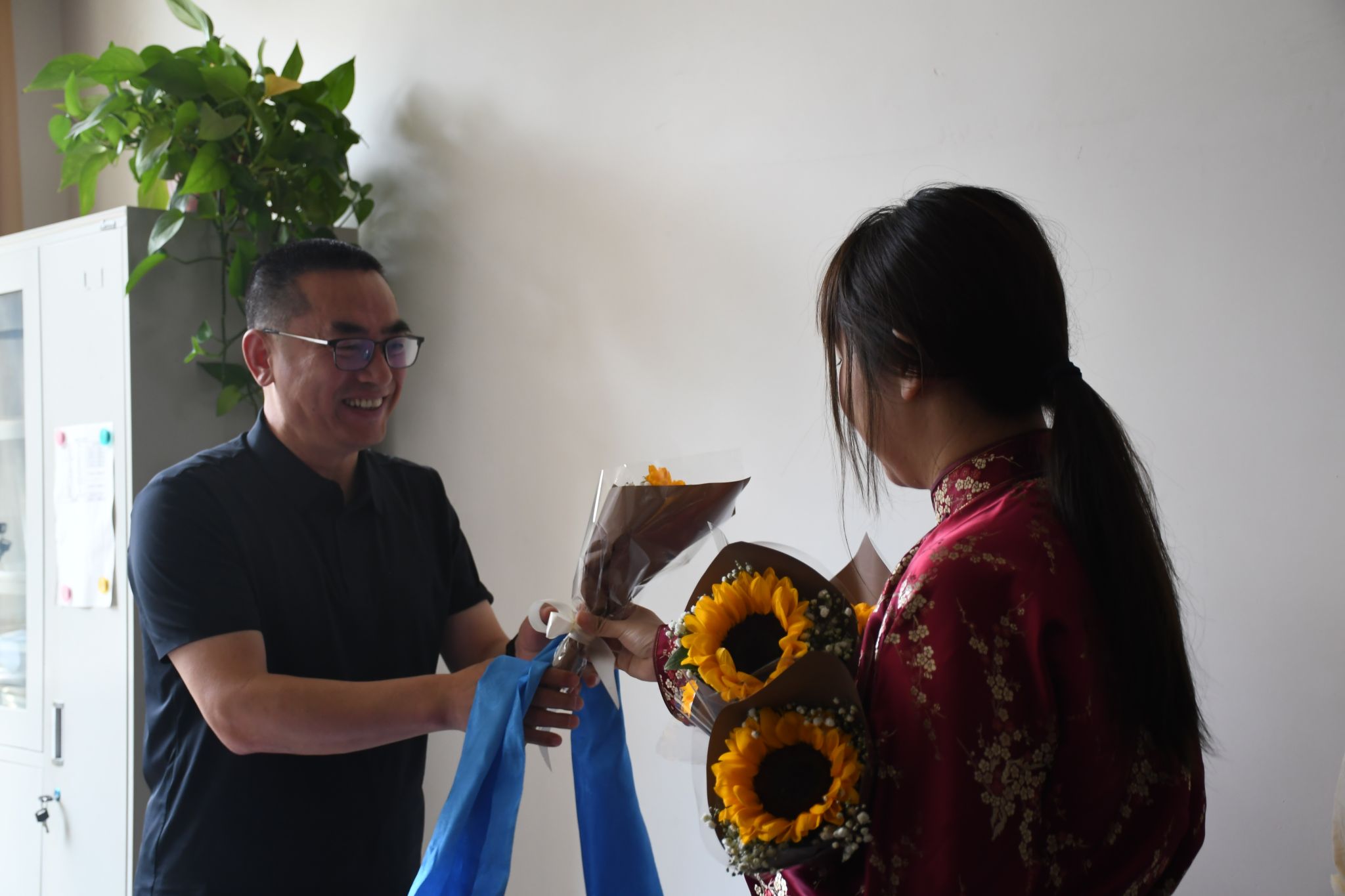 毕业生们精心整理手中色彩斑斓的鲜花,寄托着同学们对老师的感恩与祝福。他们满怀期待地走进办公室,将鲜花郑重地递到老师手中,鞠躬致意,并真诚地向老师致谢。接过鲜花的老师们,脸上洋溢着欣慰与感动的笑容,办公室内弥漫着浓浓的温情。小小的花束,传递的是深厚的师生情谊,承载的是毕业生们对老师辛勤付出的感恩。
