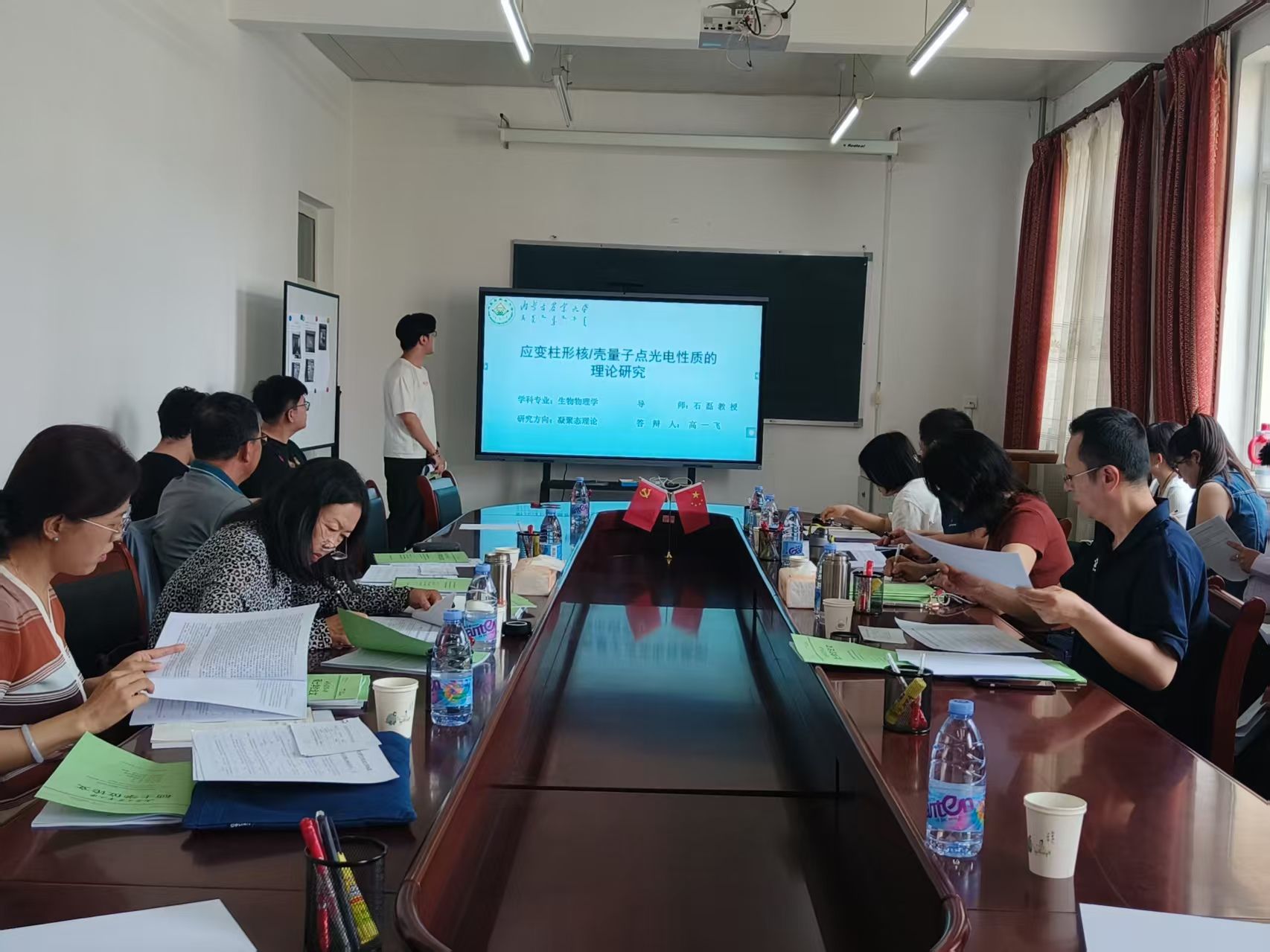 本次硕士研究生学位论文答辩会组织严密,流程规范,在遵守公开、公平、公正的原则下有序地进行。会上,按照抽签顺序,王宁、高一飞、李学浩、邓梦颖、卜咏梅、佈和朝鲁等6位同学依次在规定时间内陈述了各自学位论文的研究内容,随后答辩委员们从研究方法、研究结果、论文格式等多个方面对论文进行了细致的点评与提问交流,并就论文的不足和如何改进提出了宝贵的意见和建议。参加答辩的同学们认真听取了答辩委员的点评,并回答了老师们提出的问题。