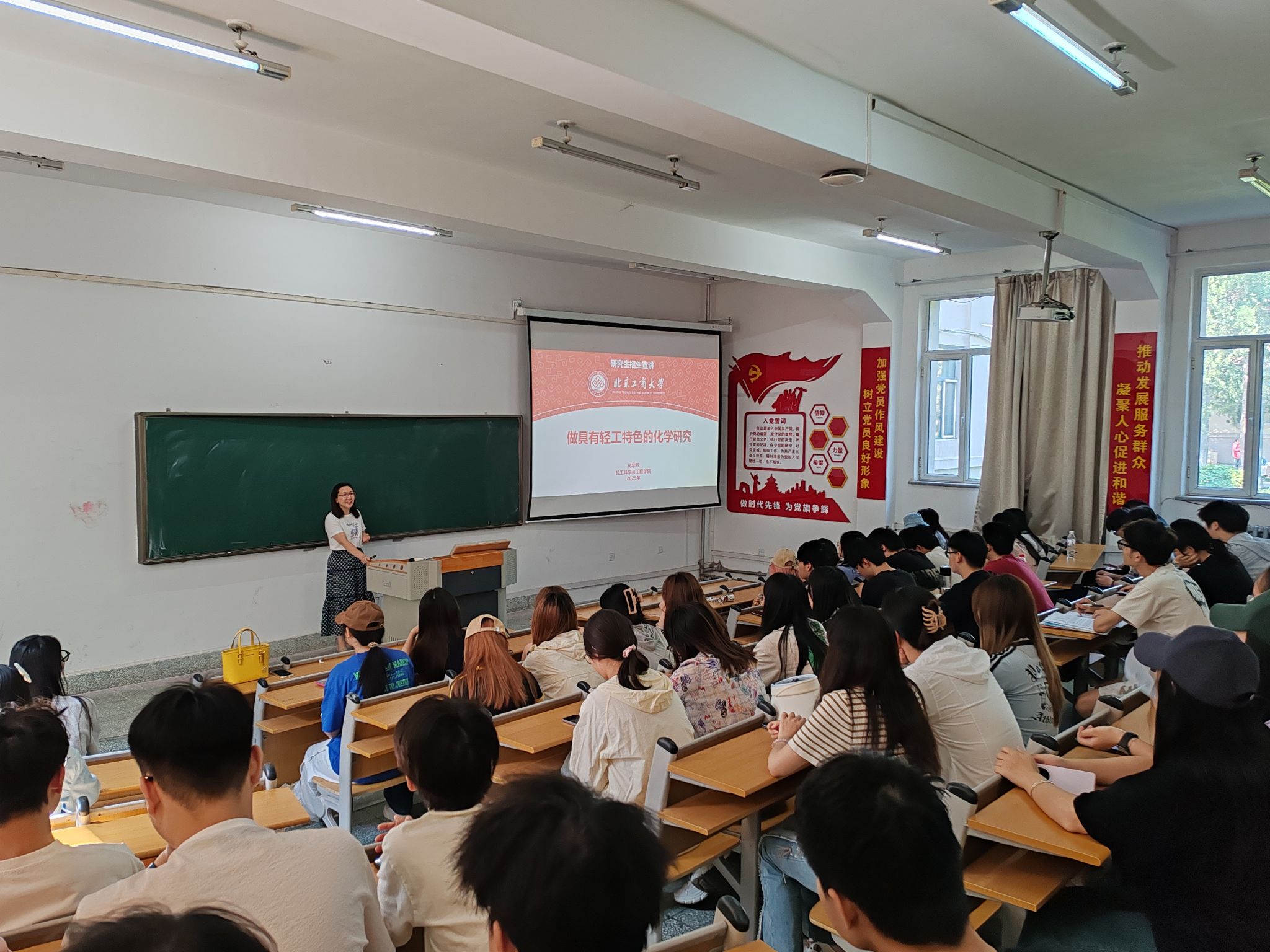 2025年6月20日上午,北京工商大学轻工科学与工程公司化学系董婧老师,受邀来公司化学化工系开展2026年研究生招生宣讲,宣讲会由系主任史全全主持,应用化学专业大二、大三年级全体员工参加宣讲活动。