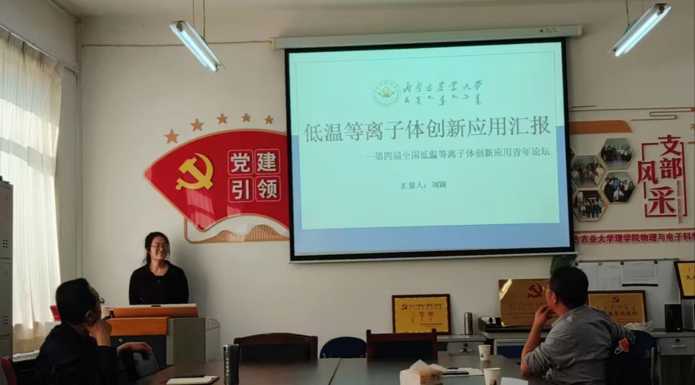 开题报告会后,刘颖和吴富荣同学就前往哈尔滨参加由哈尔滨工业大学主办的第四届全国低温等离子体创新应用青年论坛做了参会报告。两位同学在对本次会议的概况做了简单介绍后,针对与自己研究内容相近的两个报告:“等离子体技术在 C、N 循环转化中的应用探讨”,以及“等离子体活化胶用于感染性皮肤疾病治疗研究”进行了详细介绍,和大家分享了此次交流学习的经验,并对未来的研究工作进行了展望。