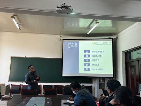 首先,张军老师以“《线性代数》课程思政”为题,从科学精神与素养、爱国主义情怀、哲学思想、辩证思维、对立统一规律五个方面就《线性代数》课程中如何融入课程思政元素进行了展示和分享。