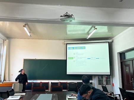 其次,萨如拉老师以“一节课教学设计”为题,以“极大线性无关组”为例,从教学内容、教材简析、学情简析、教学评价、教学目标、教学重点难点、课程资源、复习旧知、探索新知、案例练习、师生互动、思政教育、课外延伸,继续探索、课堂小结,布置作业、板书设计等方面就如何设计一节课进行了展示与分享。