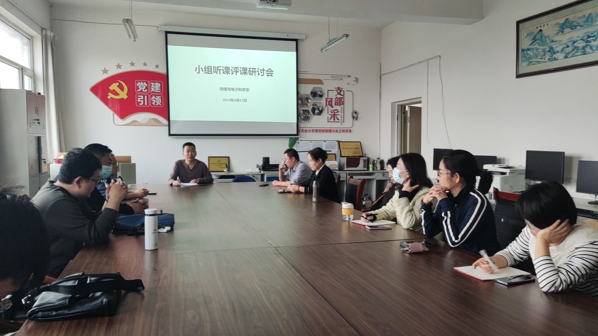 为深化课程教学改革,提升教师专业素养,加强对青年教师的培养,物理与电子科学系于2025年4月7日至16日组织开展了为期两周的集中听课活动。本次活动采取分组观摩形式,全系教师分为5个听课小组,每组4-6人,由系正、副主任和资深教授担任组长,对昝宇海、包乌日塔、崔艳玲、赵远森、孟海红5位教师主讲的《普通物理学B》《普通物理学实验A2》《光电子技术》等核心课程进行课堂观摩。